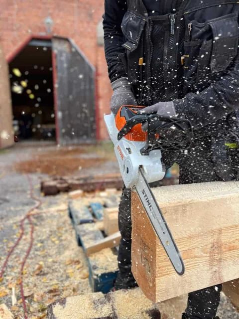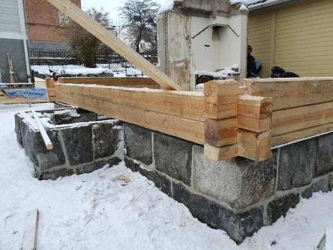 I centrala Söderhamn har vi renoverat en av stadens äldsta byggnader. Det timrade gårdshuset plockades varsamt ner för att sedan återställas i ursprungligt skick. Först renoverades stengrunden och sedan timrades huset upp med 5 nya bottenvarv. Gårdshuset är helt återställt i originalskick, allt utfört enligt gamla traditioner. Byggnadsvård som den ska vara.