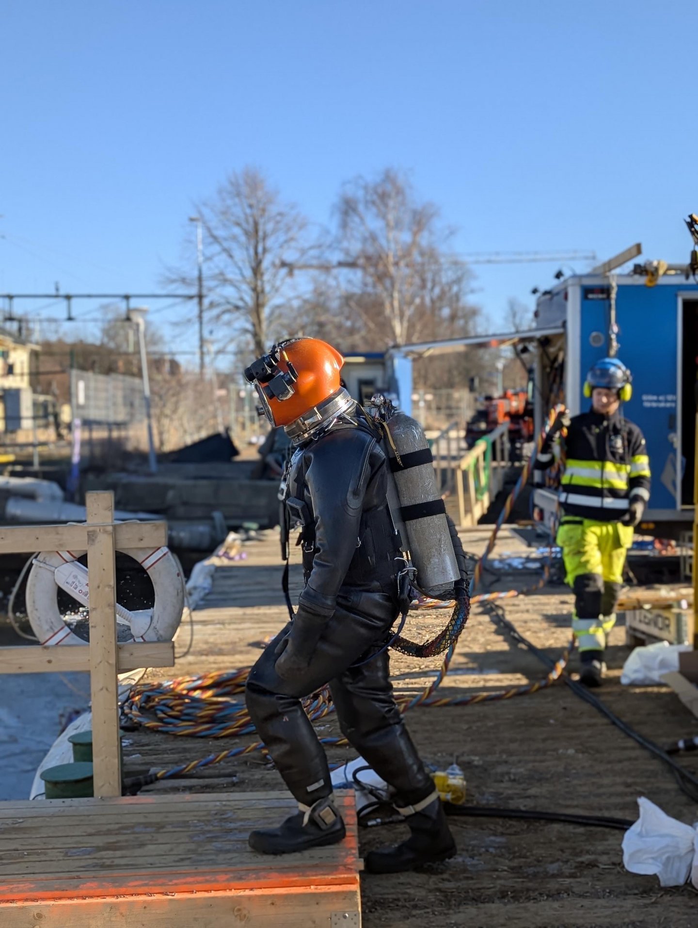 I samarbete med Svenska Tungdykargruppen har vi haft flera intressanta och utmanande projekt som till stor del genomförts under vattenytan. Tillsammans med våra uppdragsgivare och dykargruppen har vi planerat projekten som kräver både specialistkompetens och stor erfarenhet av liknande arbetsuppgifter. Vi har projekterat och tillverkat material som sedan monterats under vattenytan. Utförda uppdrag har varit både industrijobb och kajrenoveringar.